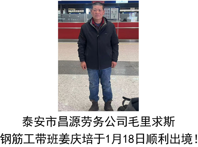 恭喜毛里求斯钢筋工带班姜庆培于1月18日顺利出境!