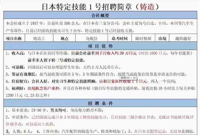 赴日本特定技能铸造招工简章