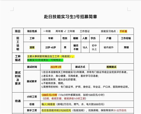 赴日本特定技能熔接招工简章