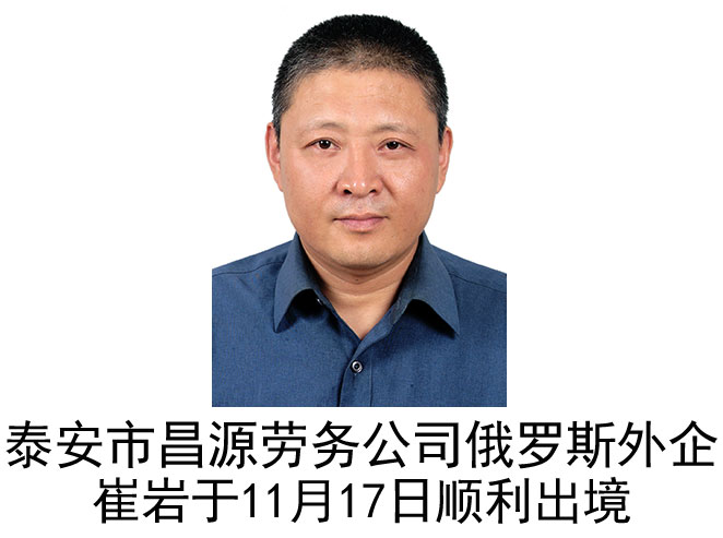 恭喜俄罗斯外企崔岩于11月17日顺利出境