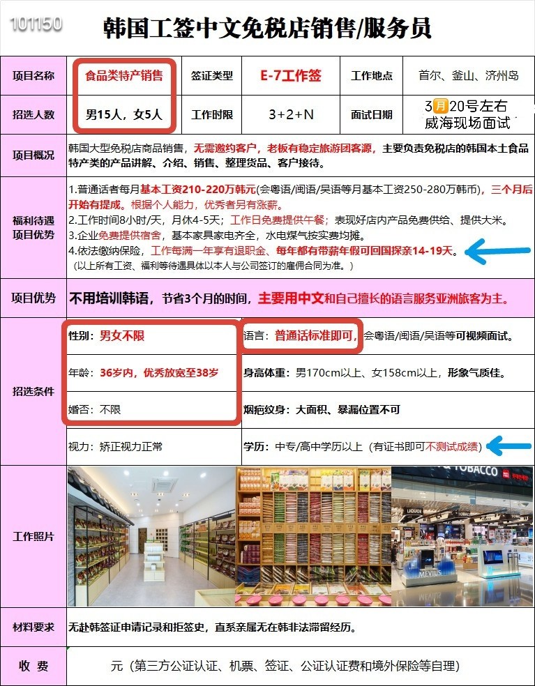 赴韩国免税店招工简章