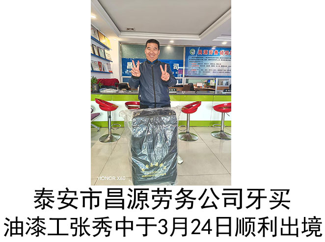 恭喜泰安市夏张镇张秀中于3月24日出境、祝他在国外工作顺利、收获满满!
