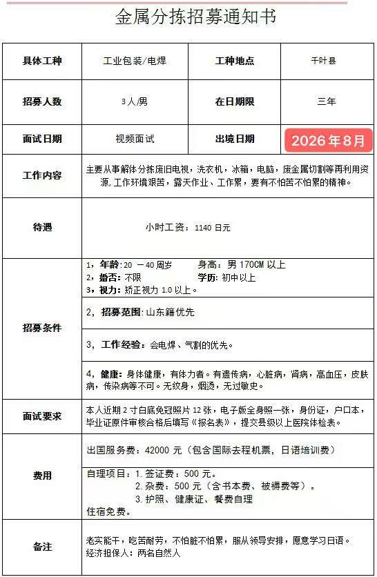 赴日本千叶县招工简章