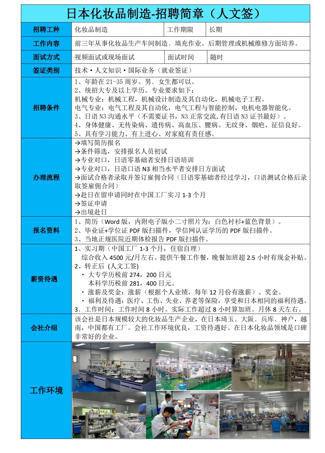 赴日本化妆品招工简章