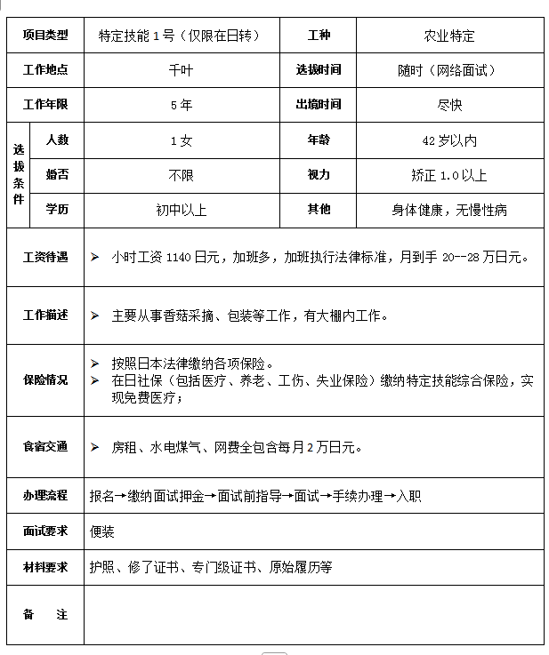 赴日本千叶县农业特定招工简章