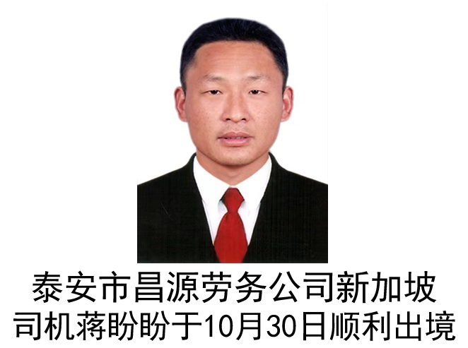恭喜新加坡司机蒋盼盼于10月30日顺利出境