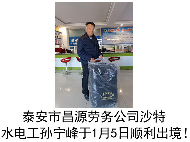 恭喜沙特水电工孙宁峰于1月5日顺利出境!