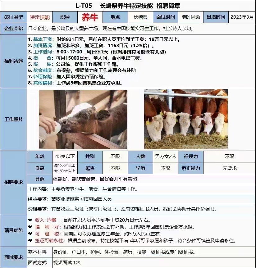 赴日本特定技能养牛招工简章