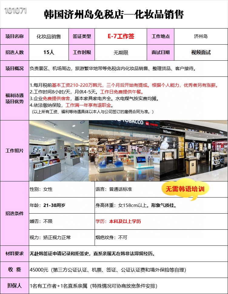韩国免税店招工简章