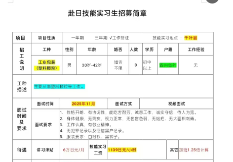 赴日工业包装招工简章