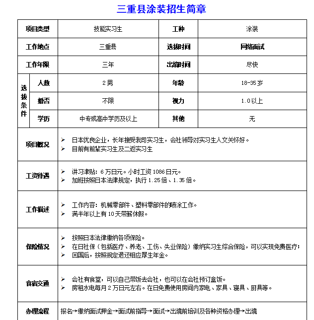 赴日三重县金属涂装招工简章