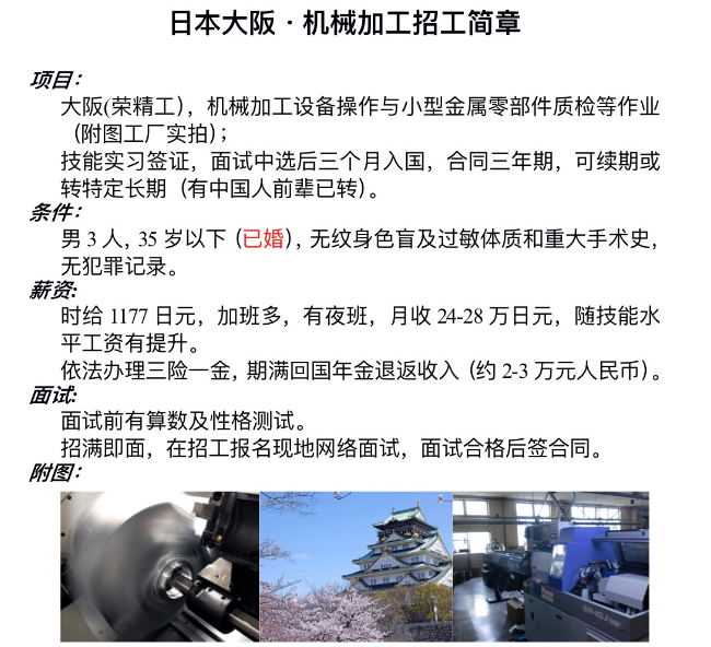 赴日机械加工招工简章