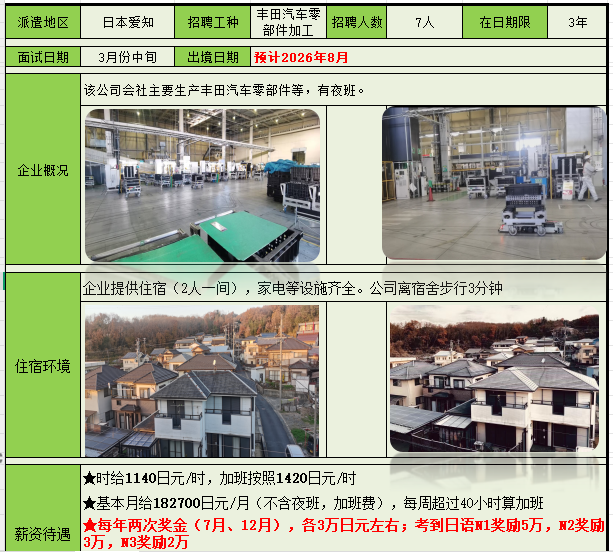 赴日本爱知丰田汽车部件加工招工简章