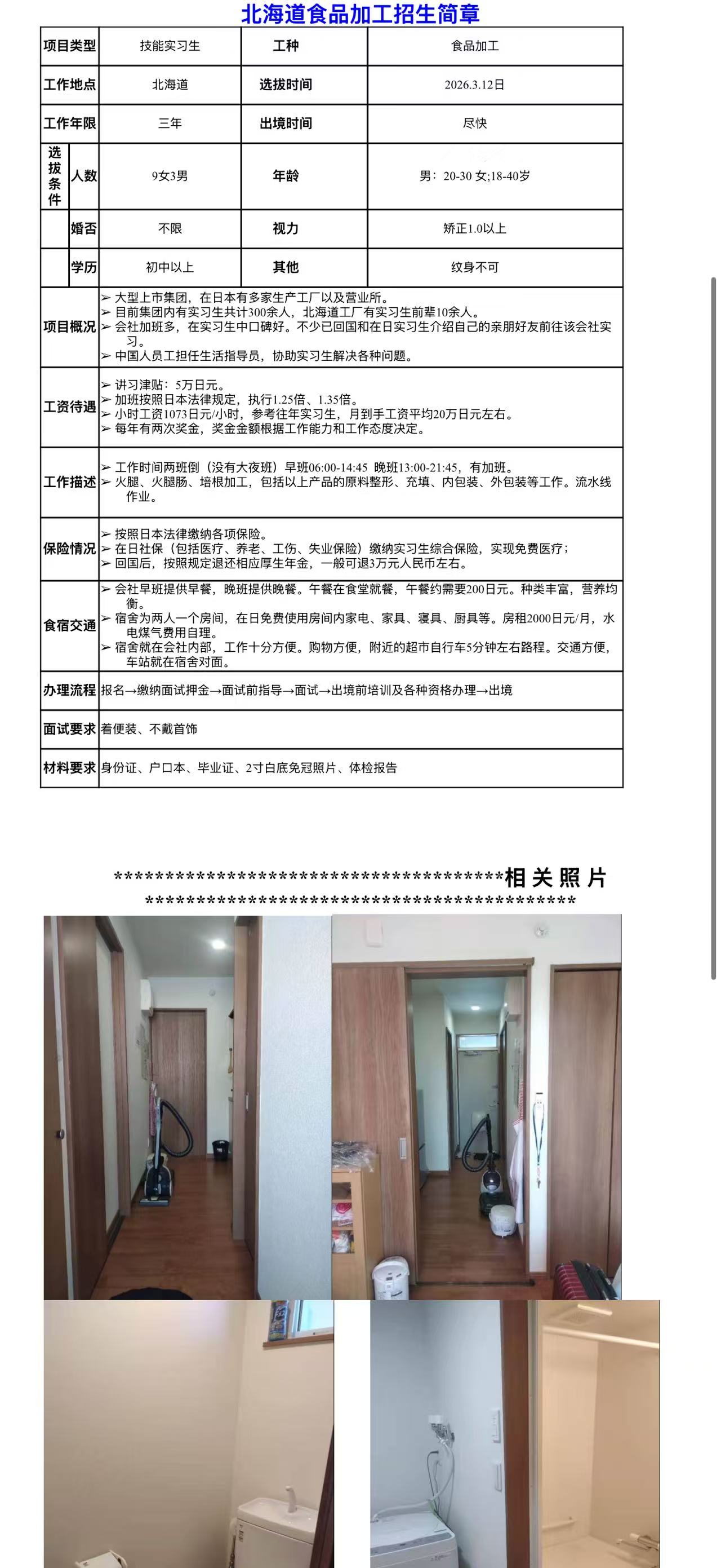 赴北海道食品加工招工简章