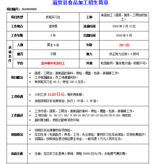 赴滋贺县食品加工招工简章