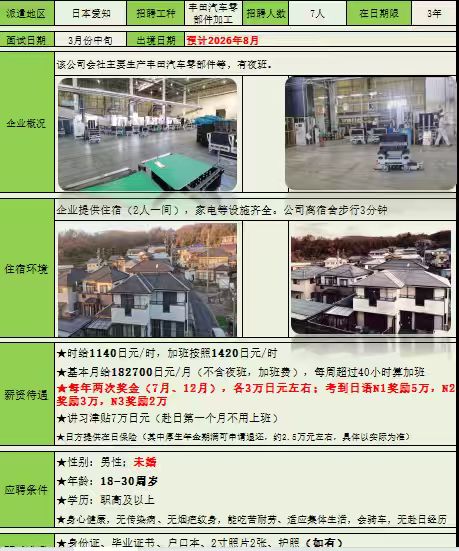 赴日本爱知汽车零部件加工招工简章